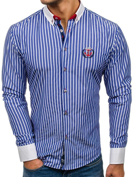 La chemise élégante avec les manches longues pour homme bleue foncée Bolf 5827-1