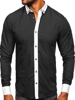 Chemise élégante à manche longue pour homme noire Bolf 21750