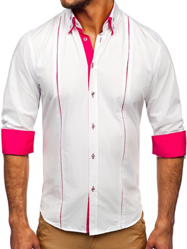 La chemise élégante avec les manches longues pour homme blanche-rose Bolf 4744