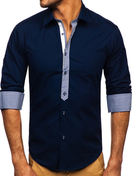 Chemise élégante à manche longue pour homme bleue foncée Bolf 6873