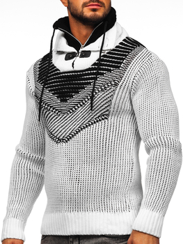 Pull épais à col montant pour homme blanc Bolf 2000