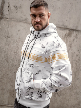 Homme Sweat-shirt à capuche imprimé avec fermeture Blanc Bolf 27B8125A1