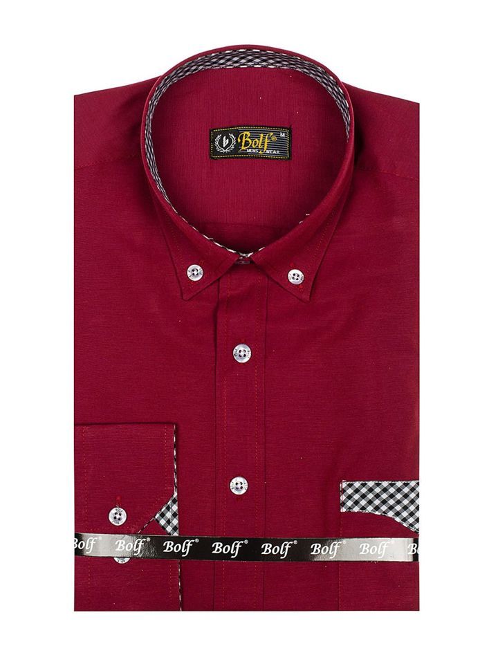 La chemise à la mode pour homme slim fit Bolf en couleur bordeaux élégante. Il s'adapte parfaitement à la silhouette masculine, a des détails décontractés. Le col, la poche et les inserts à carreaux sont décontractés. La chemise bordeaux pour homme se présente bien avec un pantalon chino. Portez-la avec une veste, un pull, un jean.