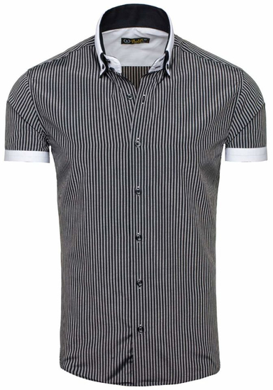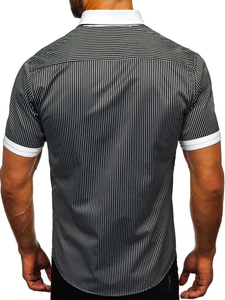 La chemise en rayures avec les manches courtes pour homme noire Bolf 1808