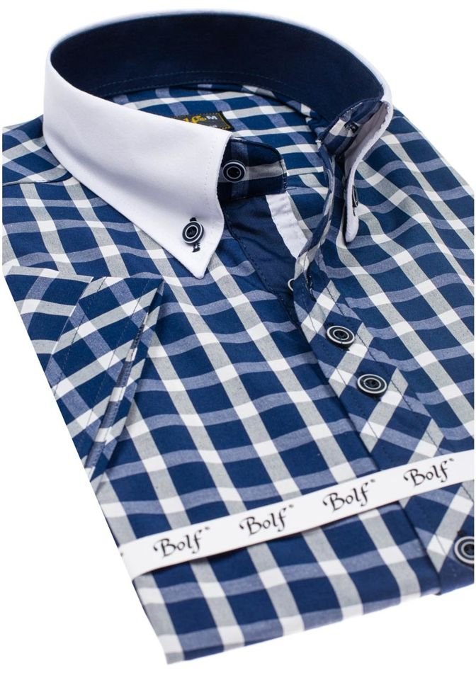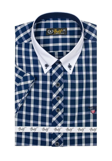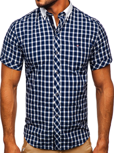 La chemise bleue foncée à carreaux pour homme Bolf avec le col blanc, contrasté. Légère, ajustée à la silhouette, extrêmement confortable. La chemise bleue foncée avec les manches courtes slim fit est le must have. Elle est essentiel pour une stylisation sympa avec un short, un pantalon chino et un slip-on ou des mocassins.