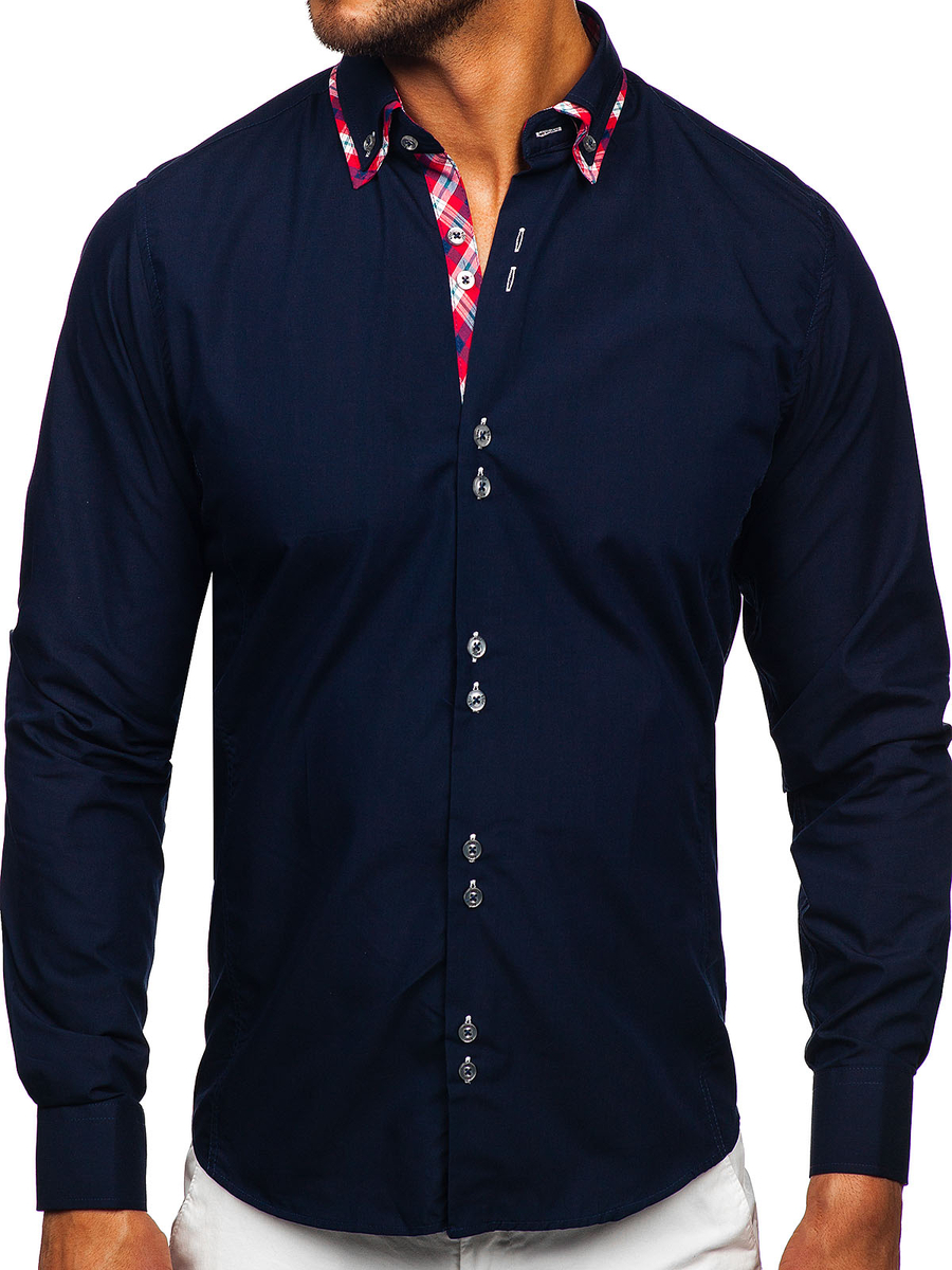 Opinions des utilisateurs de La chemise élégante avec les manches longues pour homme bleue foncée Bolf 4704