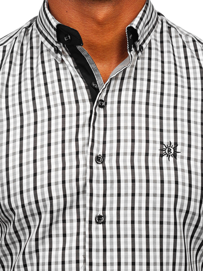 Carreaux sont votre "couleur" préférée? Vous aimez vous démarquer, mais expérimenter avec la mode n'est pas votre histoire? La chemise noire avec les manches courtes Bolf dynamise bien un look, se porte bien, est attirante. Elle est idéale pour été. La chemise noire à carreaux slim fit va génialement avec un pantalon en lin, un short ou un jean.