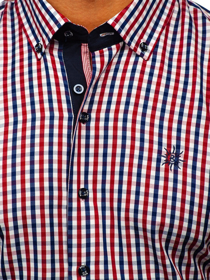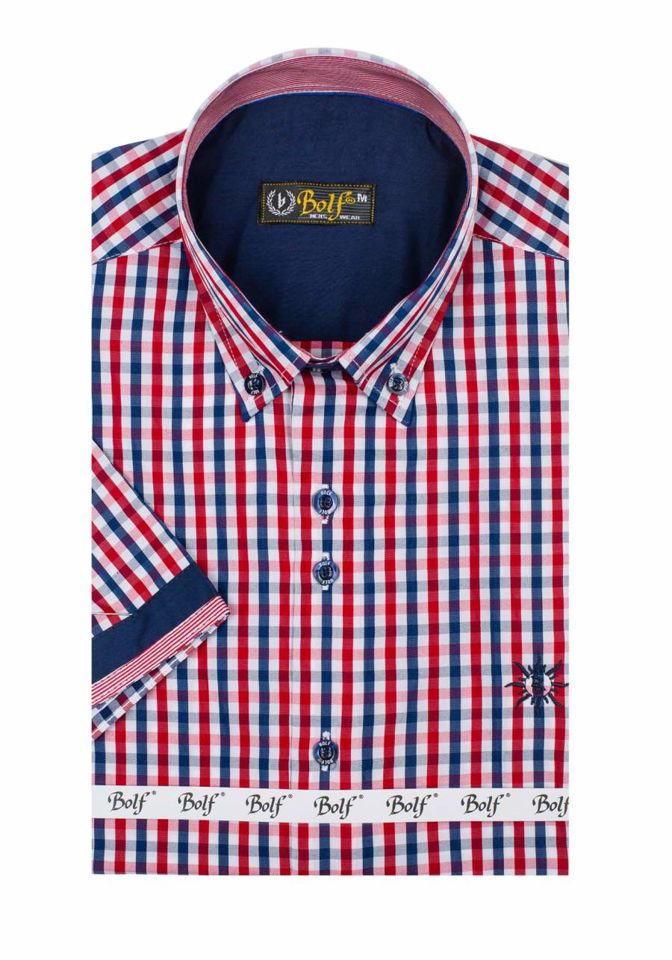 Carreaux sont votre "couleur" préférée? Vous aimez vous démarquer, mais expérimenter avec la mode n'est pas votre histoire? La chemise rouge avec les manches courtes Bolf dynamise bien un look, se porte bien, est attirante. Elle est idéale pour été. La chemise rouge à carreaux slim fit va génialement avec un pantalon en lin, un short ou un jean.