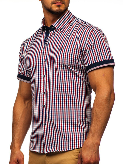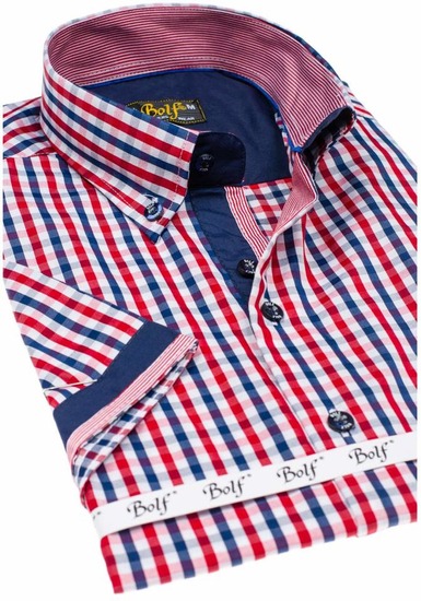 La chemise à carreaux avec les manches courtes pour homme rouge Bolf 4510