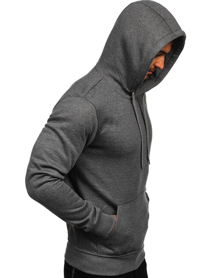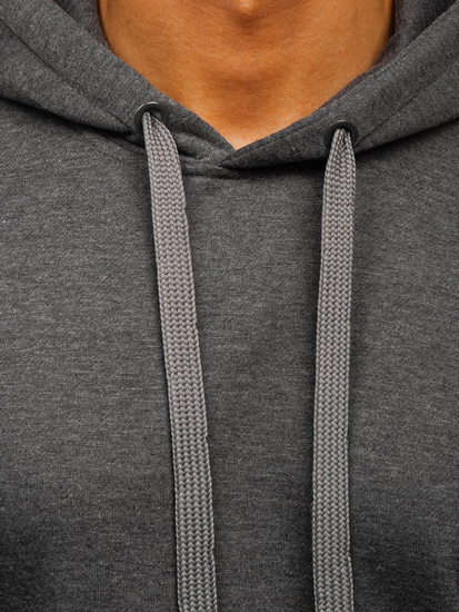 Sweat à capuche anthracite pour homme de Bolf 2009 porté sur la tête. Il possède une capuche ajustable et une poche kangourou pratique à l'avant. Une coupe et une finition classiques simples lui confèrent un caractère sportif. À la taille et aux extrémités des manches, il a des trépointes de la même couleur. Il est fait de tissu molletonné doux et lisse de couleur uniforme. Ce modèle se distingue par des couleurs riches, il peut être trouvé dans plus de vingt variantes de couleurs, grâce auxquelles il s'intègre facilement dans de nombreuses tenues. Un sweat à capuche lisse, classique et non détachable sera parfait à tout moment de l'année et dans presque toutes les circonstances. Partir à la montagne ou à la mer entre amis? Shopping toute la journée? La réunion après le travail? Même pour un rendez-vous spontané, ce sera approprié. Le produit est parfait pour un usage quotidien, c'est un article incontournable dans toute garde-robe masculine élégante. Les couleurs à la mode ajouteront du caractère à de nombreuses stylisations décontractées, de rue et sportives. Il se compose génialement avec un jean, un pantalon cargo ou un jogger. Le produit fonctionne également bien dans les tenues de sport typiques, il peut être combiné avec un pantalon sportif et un blouson de transition. Il sera utile pour l'entraînement, aussi bien en plein air que dans la salle de sport ou la salle de sport. Ce modèle est souvent choisi par les acheteurs. Il a un énorme groupe de fans parmi les clients réguliers de Bolf ainsi que nos influenceurs et stars d'Instagram. Le produit attire par sa grande finition et son bon prix par rapport à la concurrence. Ce sweat-shirt a également son homologue dans la version féminine, qui bat également des records de popularité.