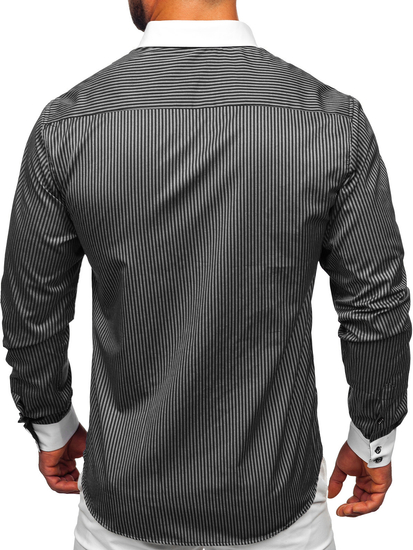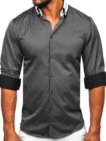 La chemise élégante en rayures avec les manches longues pour homme noire Bolf 0909