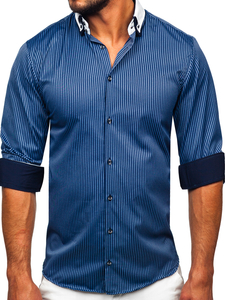 Opinions des utilisateurs de La chemise élégante en rayures avec les manches longues pour homme bleue foncée Bolf 0909