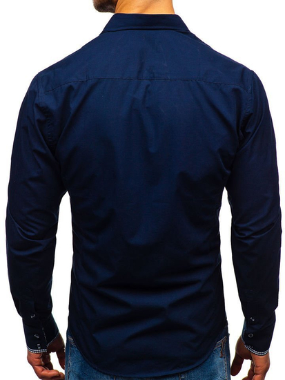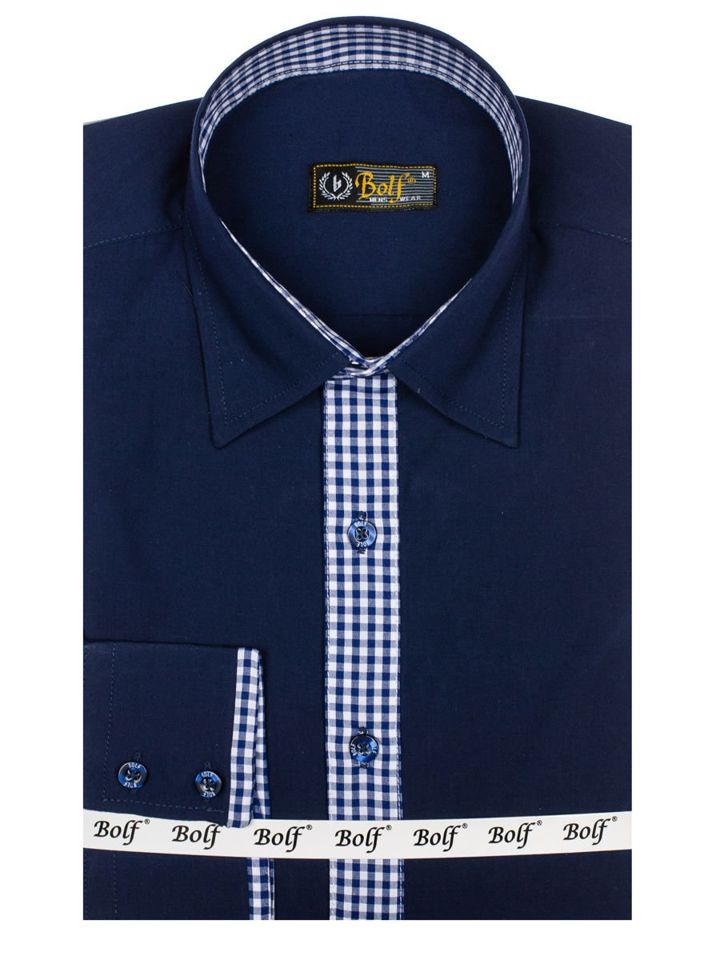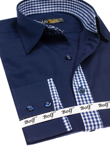Opinions des utilisateurs de La chemise élégante avec les manches longues pour homme bleue foncée Bolf 0939