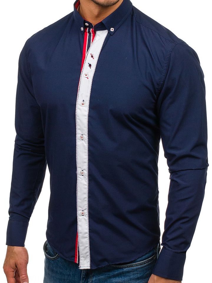 Opinions des utilisateurs de La chemise élégante avec les manches longues pour homme bleue foncée Bolf 5827-1