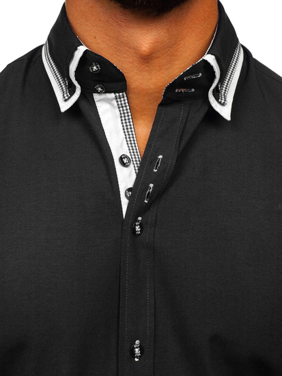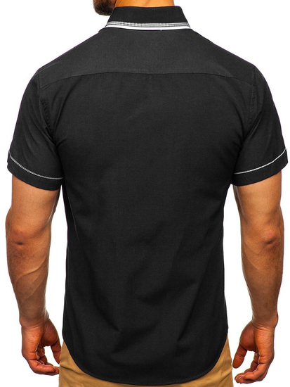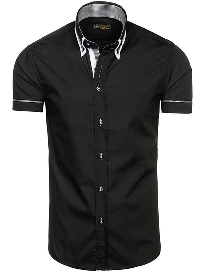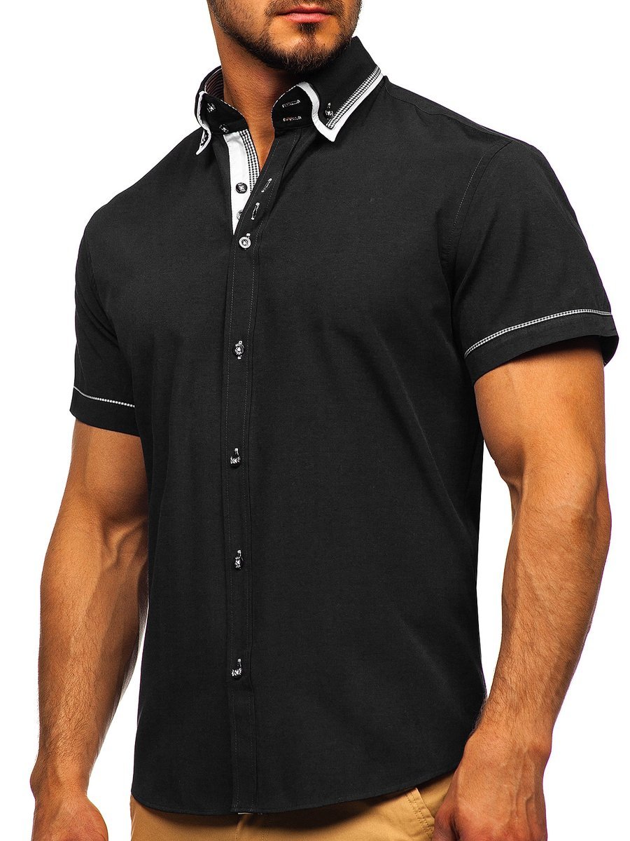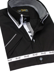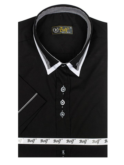 La chemise ajusté, noire avec les manches courtes Bolf. Expressif, stylé, parfaite pour des tenues informelles. La chemise noire pour homme slim fit a un fermoir décoratif et un col double, à la mode, boutonné avec un insert à carreaux. Il est très agréable à porter.