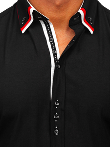 Il n'y avait pas encore une telle chose. La chemise noire avec les manches courtes Bolfa un insolite, triple col boutonné. Elle est distinguée par les bouts des manches et la patte de boutonnage. La chemise slim fit pour homme noire va parfaitement fonctionner par ex. avec un short et des chaussures blanches.