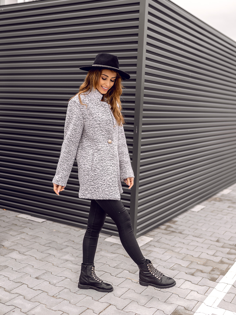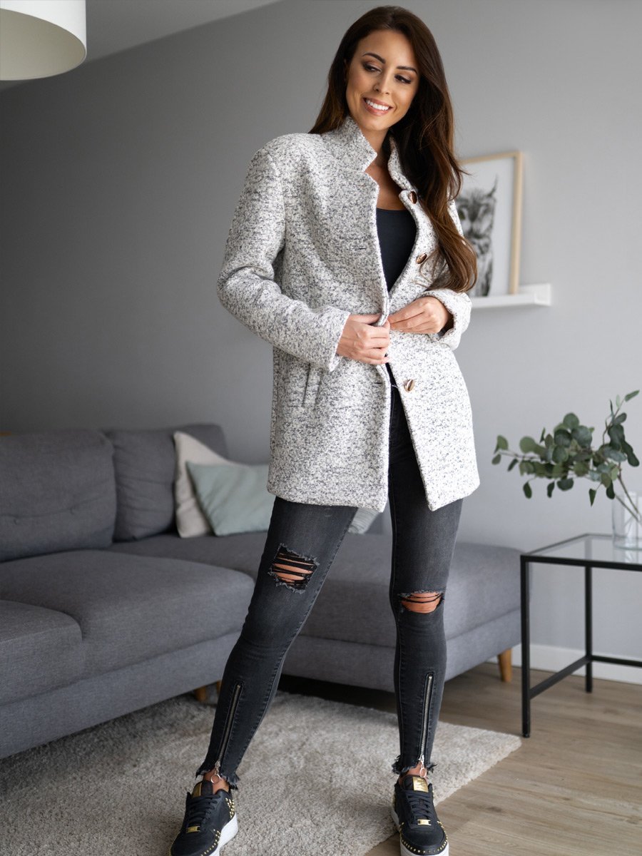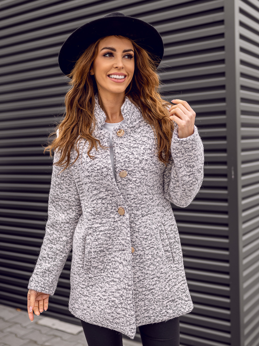 Le manteau chaud, mélange pour femme Bolf avec le col montant. La coupe minimaliste et très feminine pour les occasions différentes. Portez le manteau blanc pour femme avec une robe tricotée, un jean, un pull oversize. Combinez avec des chaussures à talons hauts, des bottillons, des bottes. Combinez le blanc avec du gris cassé, du pastel ou du noir.