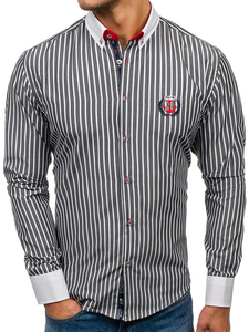 La chemise en rayures avec les manches longues pour homme graphite Bolf 1771