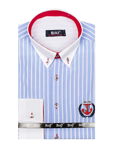 Opinions des utilisateurs de La chemise en rayures avec les manches longues pour homme bleue claire Bolf 1771