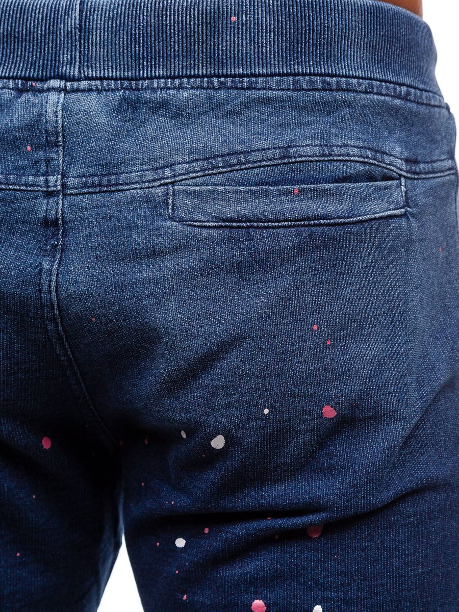 Le pantalon court excellent, bleu foncé pour homme Bolf parfait pour des stylisations de printemps et d'été. Confortable et très pratique. Le shirt en jean a trois poches, la couleur bleue foncée, les ombres, les imprimés et le motif de taches de peinture. Portez-le par ex. avec un tee-shirt, un sweat-shirt ou un tank top.