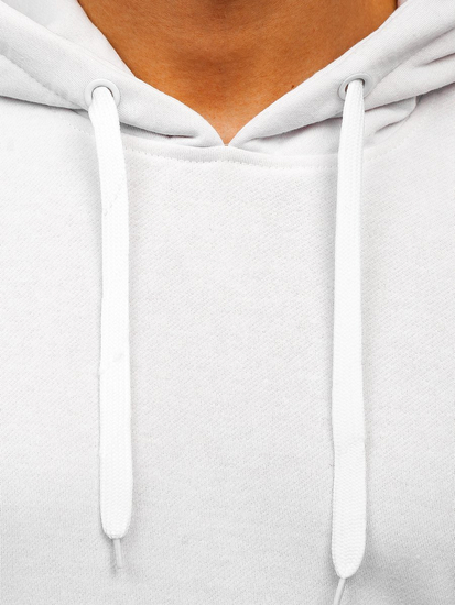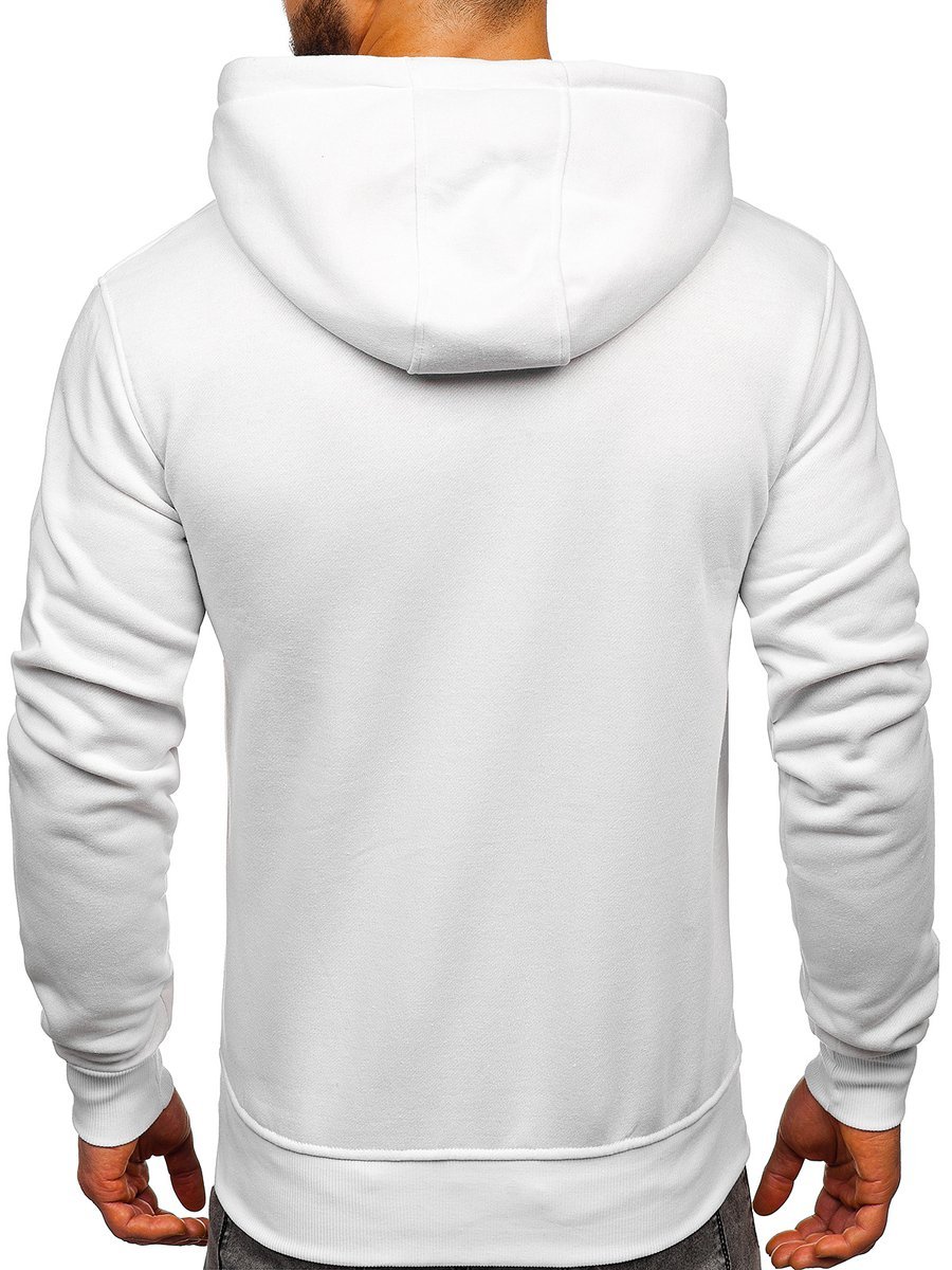 Sweat à capuche blanc pour homme de Bolf 2009 porté sur la tête. Il possède une capuche ajustable et une poche kangourou pratique à l'avant. Une coupe et une finition classiques simples lui confèrent un caractère sportif. À la taille et aux extrémités des manches, il a des trépointes de la même couleur. Il est fait de tissu molletonné doux et lisse de couleur uniforme. Ce modèle se distingue par des couleurs riches, il peut être trouvé dans plus de vingt variantes de couleurs, grâce auxquelles il s'intègre facilement dans de nombreuses tenues. Un sweat à capuche lisse, classique et non détachable sera parfait à tout moment de l'année et dans presque toutes les circonstances. Partir à la montagne ou à la mer entre amis? Shopping toute la journée? La réunion après le travail? Même pour un rendez-vous spontané, ce sera approprié. Le produit est parfait pour un usage quotidien, c'est un article incontournable dans toute garde-robe masculine élégante. Les couleurs à la mode ajouteront du caractère à de nombreuses stylisations décontractées, de rue et sportives. Il se compose génialement avec un jean, un pantalon cargo ou un jogger. Le produit fonctionne également bien dans les tenues de sport typiques, il peut être combiné avec un pantalon sportif et un blouson de transition. Il sera utile pour l'entraînement, aussi bien en plein air que dans la salle de sport ou la salle de sport. Ce modèle est souvent choisi par les acheteurs. Il a un énorme groupe de fans parmi les clients réguliers de Bolf ainsi que nos influenceurs et stars d'Instagram. Le produit attire par sa grande finition et son bon prix par rapport à la concurrence. Ce sweat-shirt a également son homologue dans la version féminine, qui bat également des records de popularité.