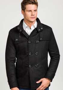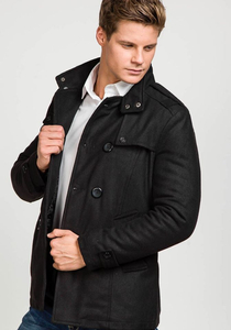 Le manteau à double rangée à la mode, noir pour homme Bolf. Il a les épaulettes militaires, les poches pratiques, le col montant et crée fantastiquement la silhouette masculine. Le manteau noir pour homme va bien en stylisations décontractées au quotidien, va fonctionner aussu en ensembles plus élégantes.