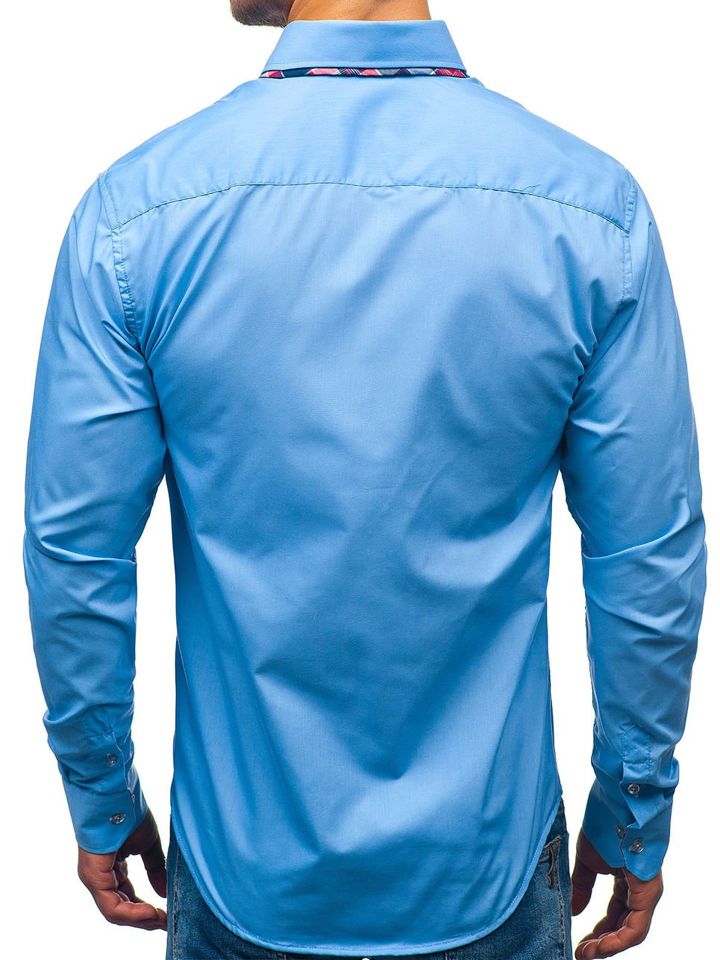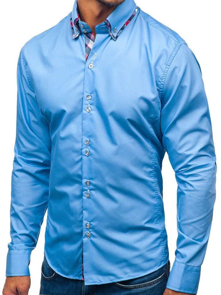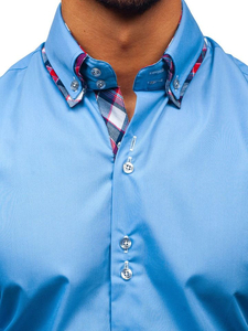 La chemise excellente décontractées pour homme slim fit Bolf avec le double col boutonné. Elle a une couleur bleue claire à la mode, le bas arrondi et le double col avec l'insert décoratif. La chemise pour homme bleue claire est ajoustée, elle va bien fonctionner dans des tenues avec une veste, un pantalon chino ou un blouson en cuir. Elle est idéale au quotidien et pour des occasions spéciales.