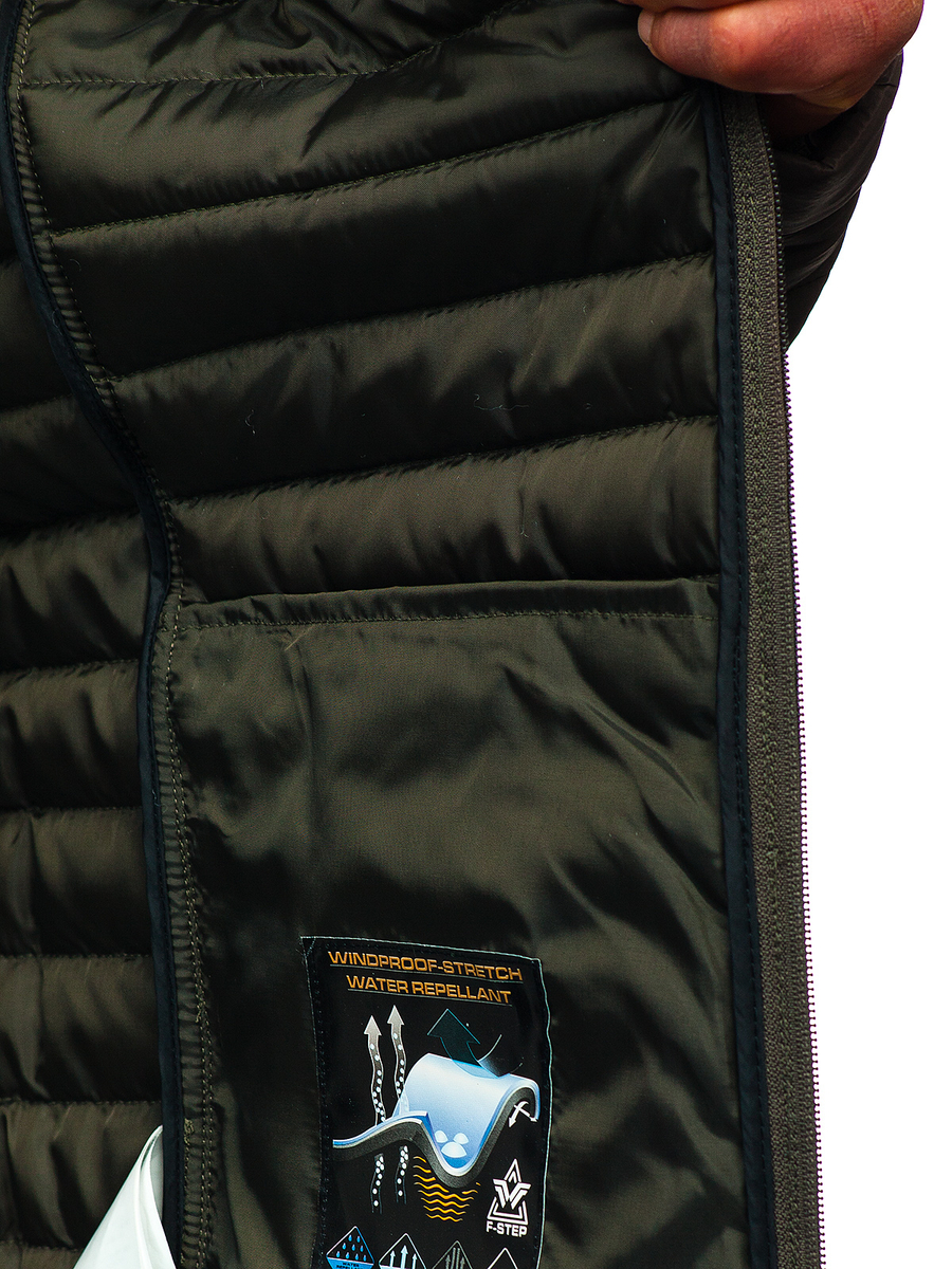 Le blouson parfait pour printemps, kaki matelassé pour homme Bolf. Il est léger, il a une capuche amovible réglable et deux poches zippées pratiques. Portez le blouson kaki au quotidien avec in jean, un pantalon baggy et des chaussures confortables.