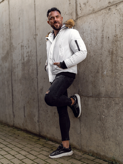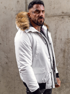 Le blouson blanc d'hiver parfait pour des jourds froids Bolf avec nombreuses poches et la fourrure décorative sur la capuche. Il est confortable, chaud, s les poches à boutons-pression Le blouson d'hiver blanc va bien en toutes les stylisations quotidiennes. Portez-le sur un pull ou un sweat-shirt, combinez avec un jean et un pantalon jogger.