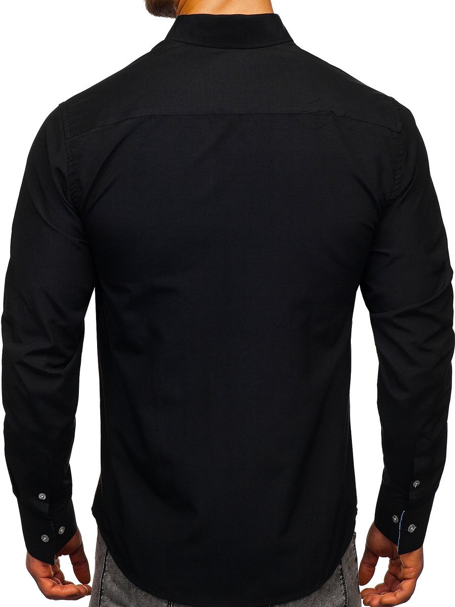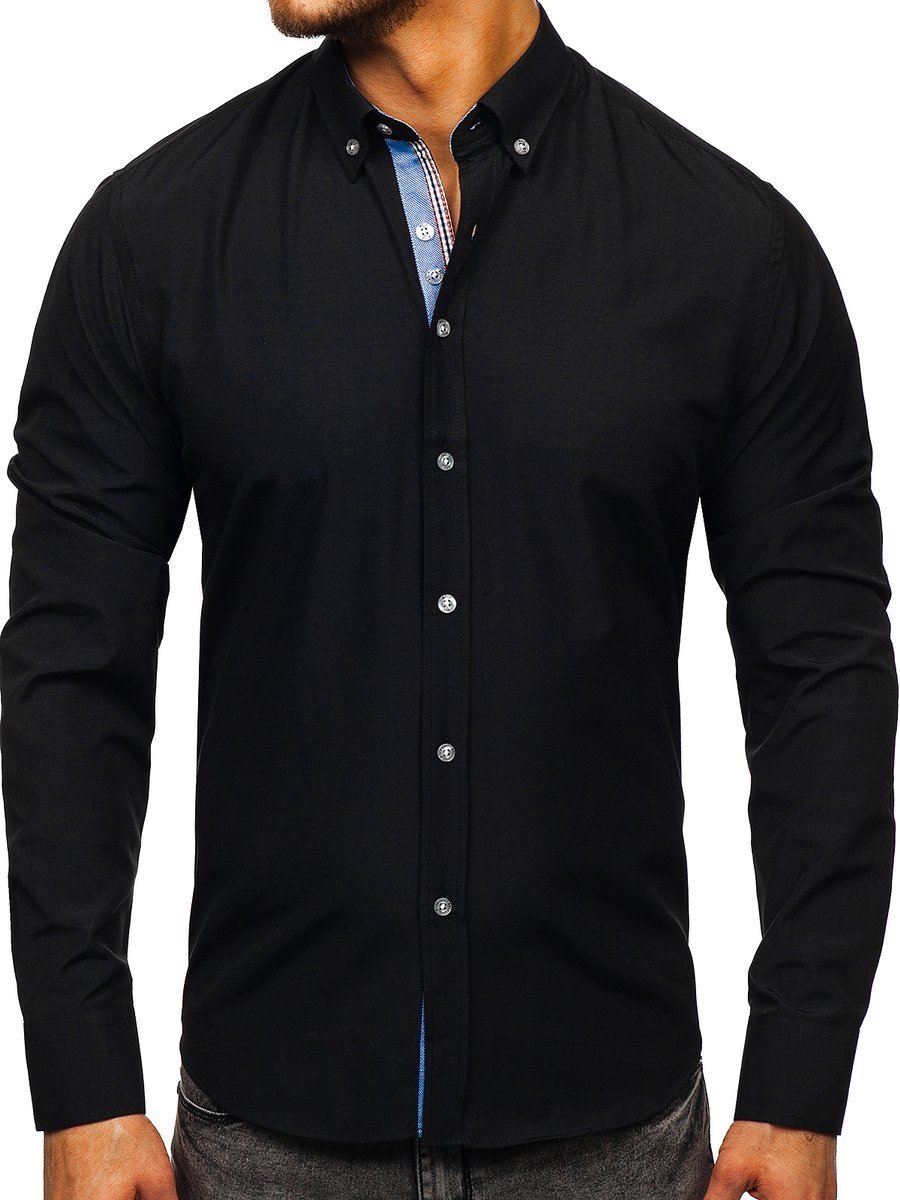 La chemise classique pour homme slim fit Bolf en couleur noire, avec un col boutonné. Confortable, à la mode et soigneusement cousu. La chemise noire avec les manches longues slim fit va bien souligner une silhouette, sera un complément parfait des stylisations décontractées. Il va bien avec un jean et un pantalon chino.