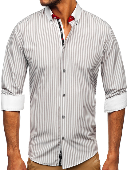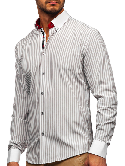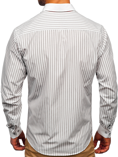 Chemise à manches longues pour homme grise rayée Bolf 20727