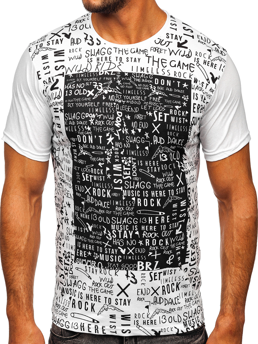 Opinions des utilisateurs de T-shirt homme en coton blanc avec imprimé Bolf 1173