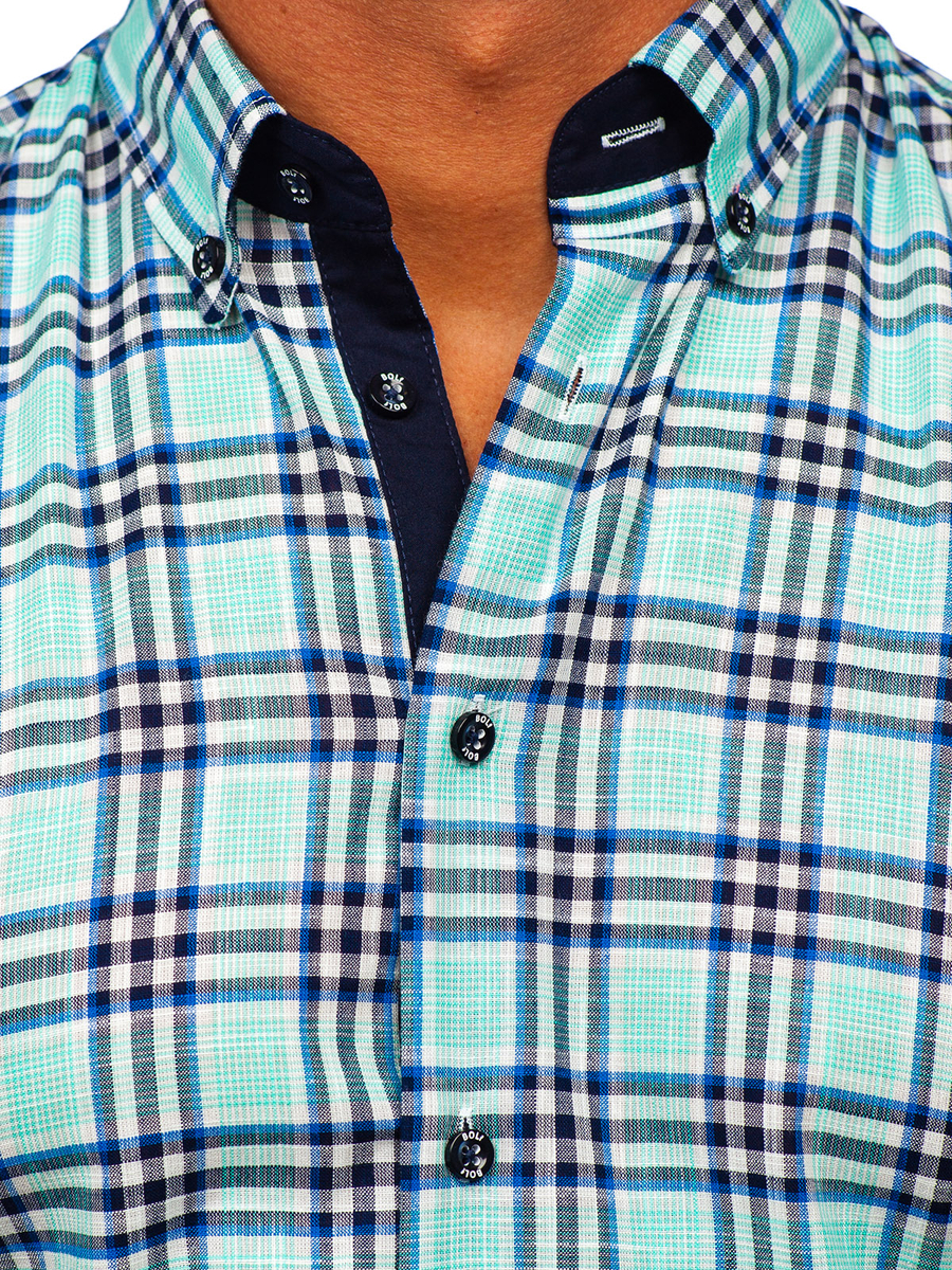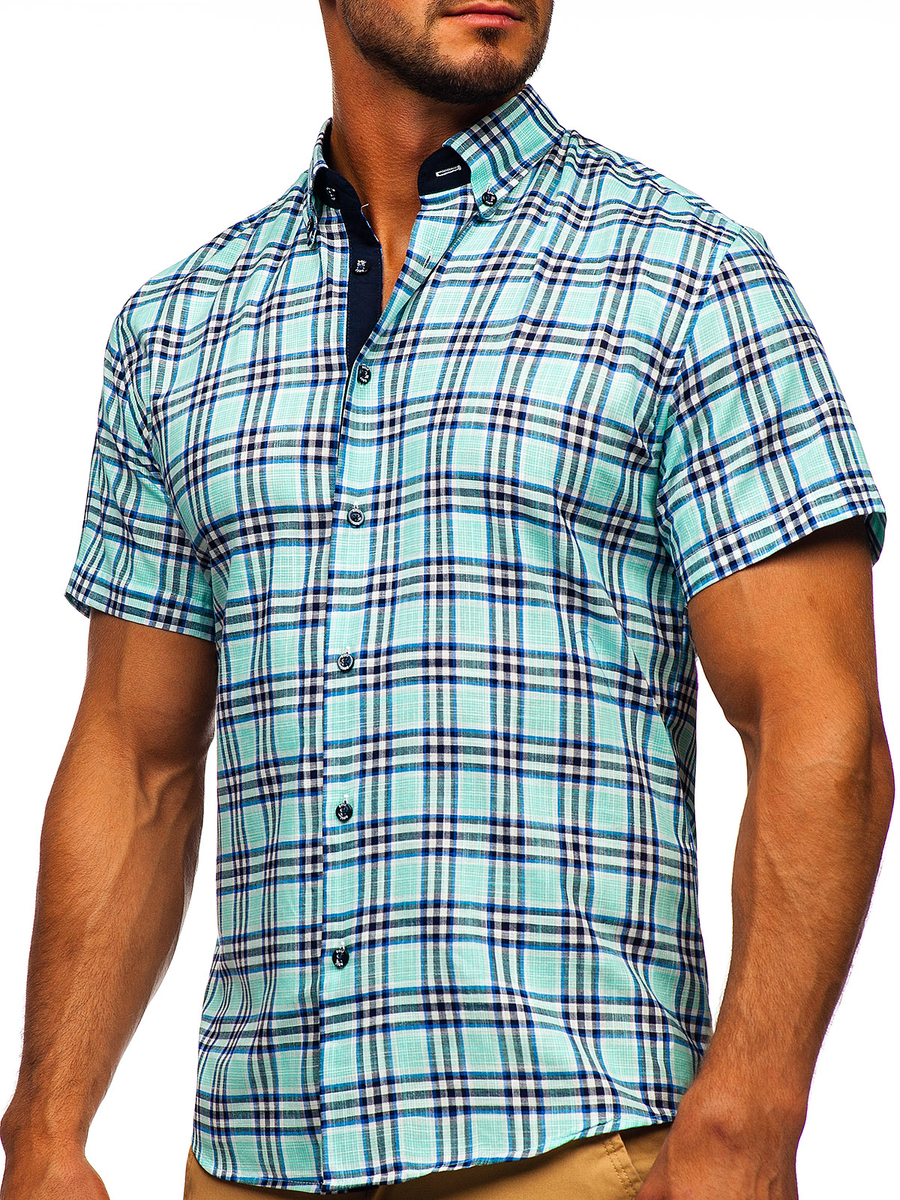 La chemise menthe à carreaux à manches courtes pour homme Bolf 201501, de coupe décontractée. Il est fermé à bouton, a un col boutonné glamoureux et un bas arrondi. Ce modèle de chemise est disponible en plusieurs variantes de couleurs, grâce auxquelles chacun choisira quelque chose pour lui-même. C'est une chemise slim fit qui s'adapte bien à la silhouette masculine et souligne bien le corps. La chemise décontractée sera une excellente base pour créer de nombreuses stylisations intéressantes. La chemise à manches courtes est parfaite pour un usage quotidien et pour toute occasion. Il est parfait pour chaque saison - c'est un produit must have dans la garde-robe de chaque homme. Associez-le à un jean ou à un short. Vous pouvez la porter sous une veste en cuir ou un blouson bomber.