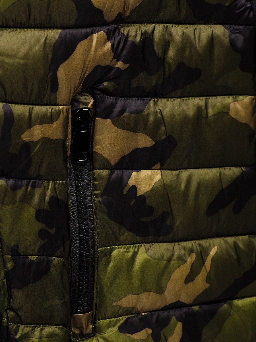 La veste d'hiver camouflage matelassée verte pour homme Bolf SM80 est parfaite pour l'automne et l'hiver. Il se ferme par une fermeture éclair, possède un col montant et des manches terminées par une bordure élastique. Le blouson est completé avec un motif camo à la mode et le matelassage sur toute la surface ajoute un caractère moderne unique. Il est fait de 100% polyester. Il a des poches pratiques: les deux extérieures zippées et les deux intérieures non-zippées. Grâce à sa polyvalence, le produit peut être combiné avec de nombreux styles. Il est parfait pour une promenade, une rencontre entre amis ou un city trip. Ce blouson va créer une stylisation idéale avec un pantalon chino et un longsleeve.