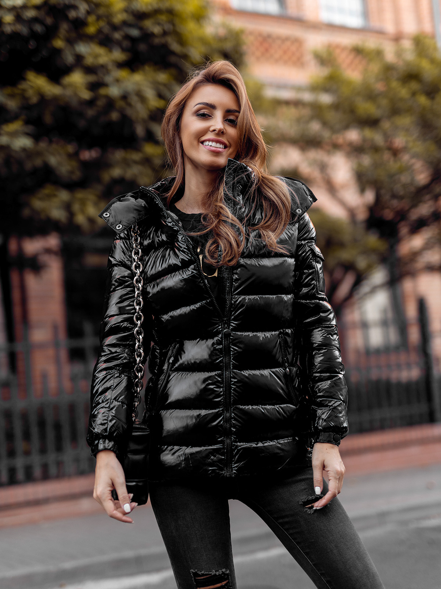 Blouson d'hiver matelassé à capuche pour femme noir Bolf B9583