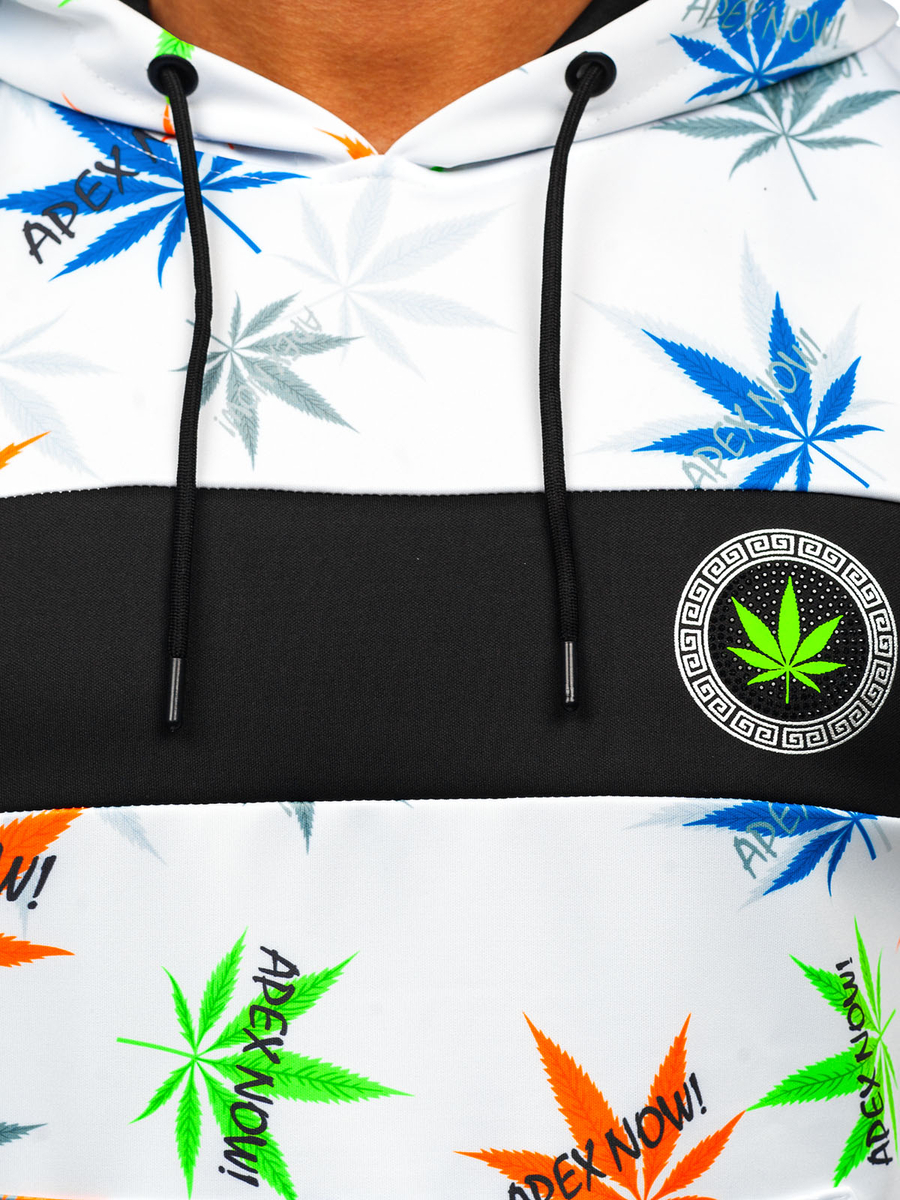 Sweat-shirt imprimé à capuche pour homme blanc Bolf HM517