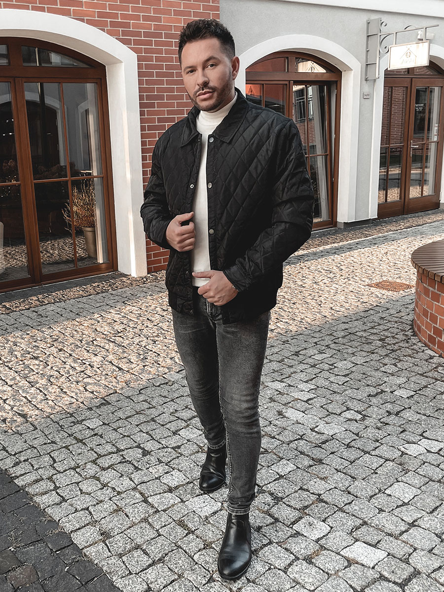 Le blouson de transition matelassé noir pour homme de Bolf M13081 est le classique dans la saison automne-printemps. Le bas est fini par un passetpoil, grâce auquel le blouson s'adaptera parfaitement au corps et offre une protection contre le froid. Le matelassage sur toute la surface lui confère un caractère unique. Il a des boutons-pression et deux poches extérieures aussi avec boutons-pression. Un élément supplémentaire est une poche interne. La polyvalence de la veste permet son utilisation extraordinaire dans les tenues sportives et décontractées. Parfait pour les tâches quotidiennes, comme les achats ou jogging matinal. Le principal avantage du blouson est sa légèreté et son confort à porter. Créez une stylisation unique en complétant le blouson avec un pantalon chino et un longsleeve.