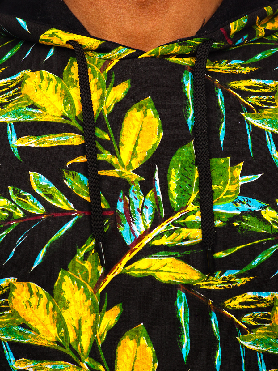 Le sweat-shirt noir imprimé à capuche pour homme Bolf 141030 est le choix parfait pour les jours plus froids. Il a la capuche réglable et deux poches latérales. Les manches et le bas sont finis par des passepoils qui protège du froid. Le produit est composé à tissu de haut qualité, 100% de coton ce qui le rend très agréable au toucher. Ce modèle se distingue par des imprimés décoratifs originaux sur toute la surface. Le sweat-shirt à capuche va fonctionner à tout moment de l'année et en toutes circonstances. Mettez-le lors d'activité physique, d'une promenade ou d'un city trip. Pour la sortie avec des amis il se compose génialement avec un jean, un pantalon cargo ou un pantalon jogger. Mettez-le avec un pantalon de sport pour créer un look sportif.