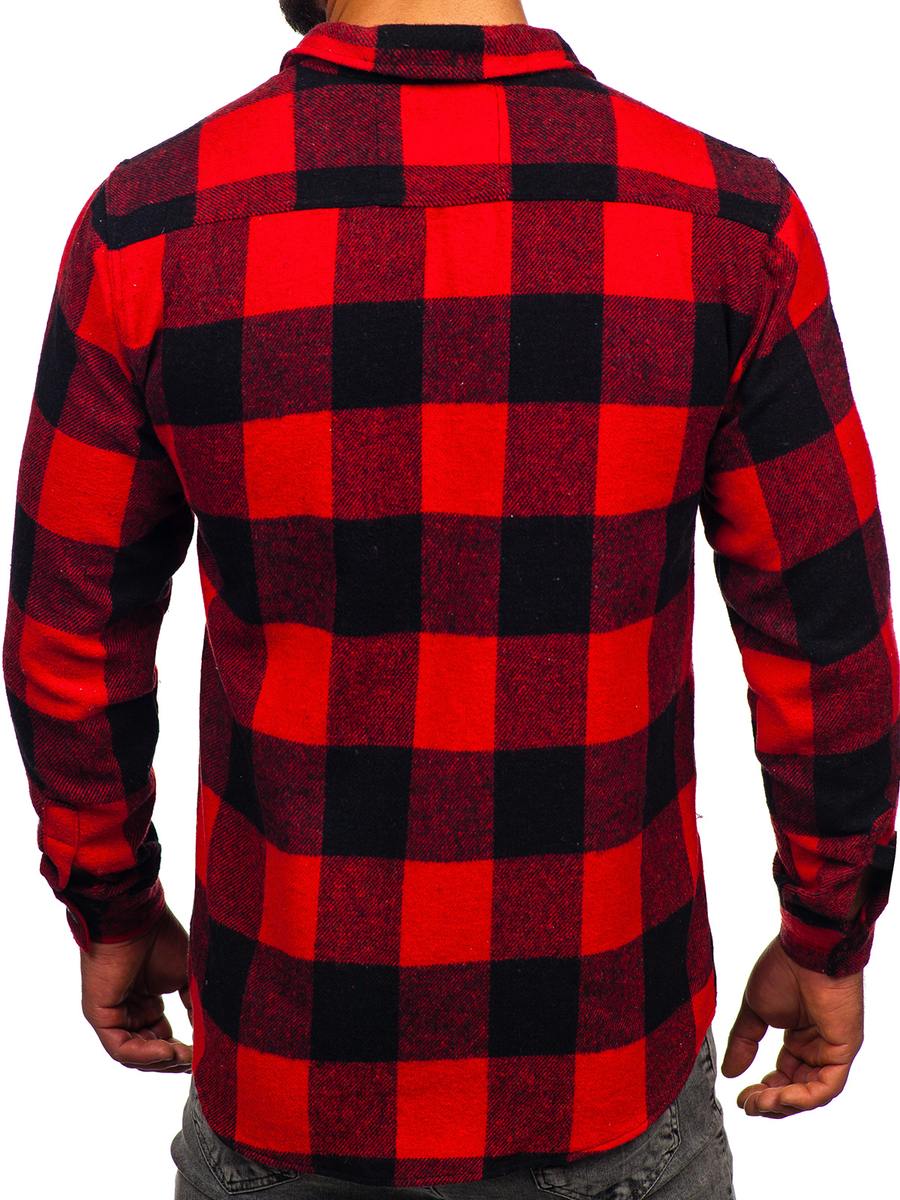 Chemise en flanelle à manche longue pour homme noire-rouge Bolf 20723