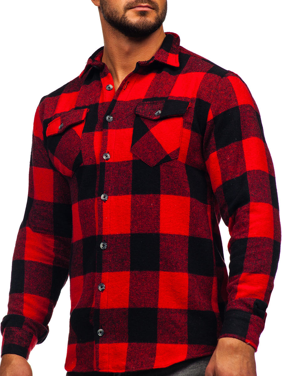 La chemise en flanelle à manches longues pour homme noire-rouge Bolf 20723 est un produit boutonné avec un col hai. La chemise a deux poches élégantes fermées par un bouton. Le bas de la chemise est arrondi. Le produit a des manchettes qui sont également fermés avec un bouton.