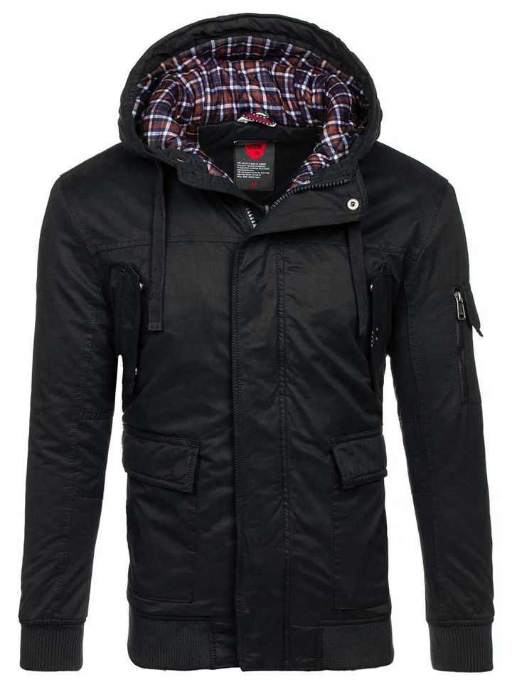 La veste d'hiver noire pour homme de Bolf 1890 est l'un des articles les plus recherchés de la saison automne-hiver. Le blouson rembouré avec fermeture éclair et à boutons. Il possède une capuche intégrée ajustable intégrée au col, renforcée par la doublure à carreaux. Une veste d'hiver de ce type fonctionnera bien dans le sport et les stylisations de tous les jours, mais elle conviendra également aux tenues de rue et, dans certains cas, aux tenues décontractées élégantes. Il est lisse, noir. Il possède un collier pratique, qui protégera en outre contre la pénétration du froid et du vent. La veste possède de nombreuses poches pratiques. En bas, il a deux poches extérieures, de type cargo très spacieuses, fermées par des boutons-pression et deux poches latérales. De plus, il possède deux poches poitrine à rabat, également fermées par des boutons-pression et une poche intérieure à fermeture éclair. es manches et le bas de la veste sont finis par un passepoil pour un meilleur ajustement. La veste s'intègre parfaitement dans les tendances de la mode contemporaine. Il est fait d'un tissu épais, chaud et de haute qualité qui vous protégera du froid même les jours les plus froids. Il complétera parfaitement le look de tous les jours, il est parfait pour les gelées.