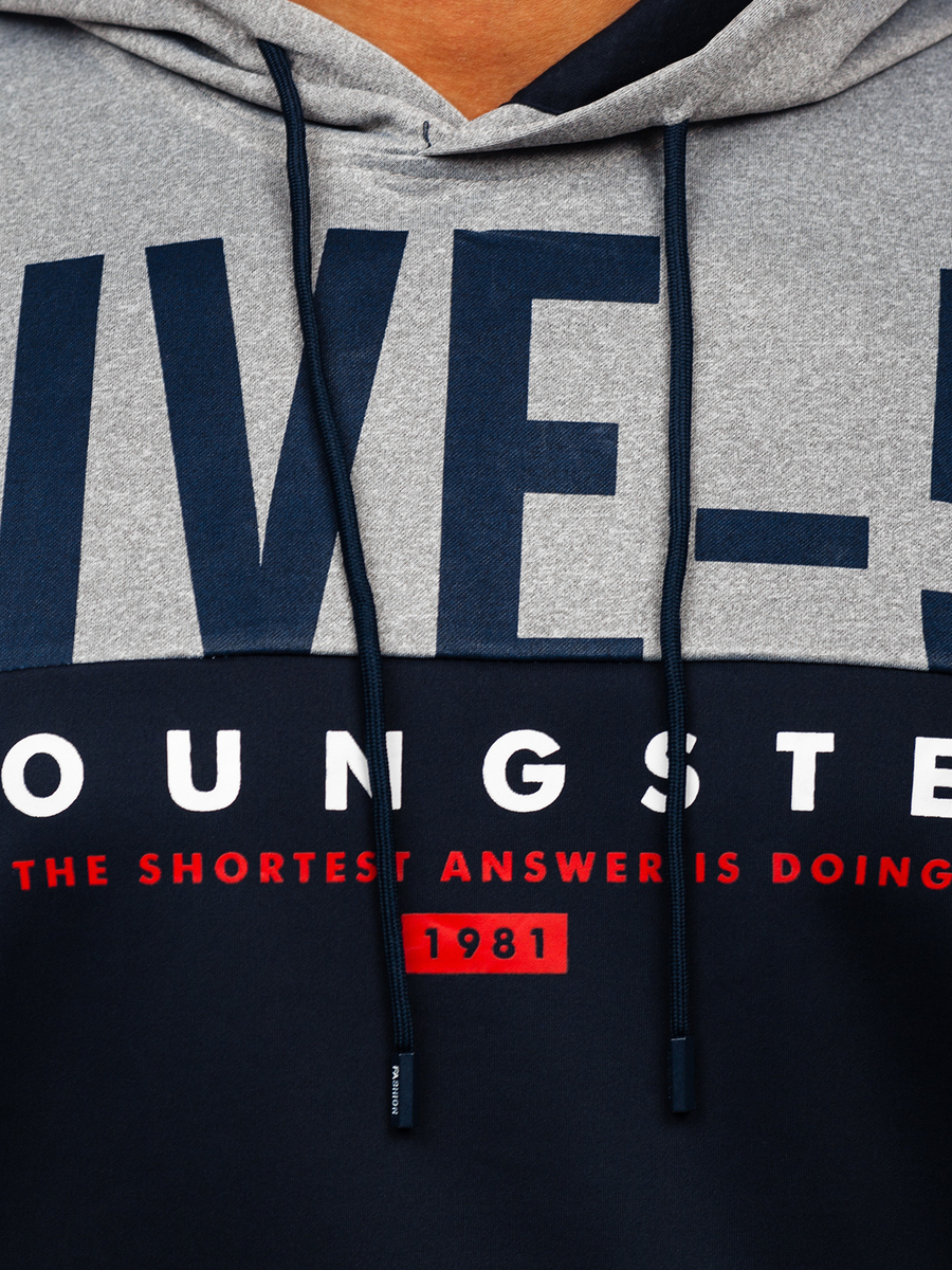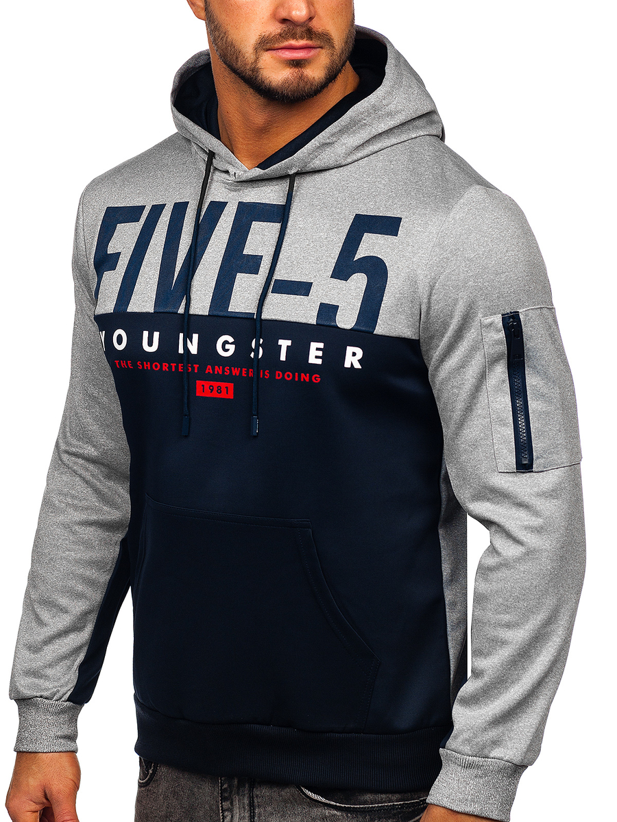 Le sweat-shirt imprimé à capuche bleu foncé pour homme Bolf HY972 est le bon choix pour les hommes qui apprécient un look moderne et le confort. Le sweat a un imprimé original sur le devant qui lui ajoute un caractère unique. Il est disponible en trois versions de couleurs. Les manches et le bas du sweat sont finis par des passepoils. Le sweat-shirt a une poche kangourou pratique et la capuche réglable en double épaisseur. Ce modèle est parfait aux fans d'un mode de vie actif. Il peut être porté pour un entraînement exigeant, un jogging et des activités de plein air. Le tissu du sweat vous fera vous sentir à l'aise. Si vous appréciez le confort, créez votre look de sport avec un survêtement et un gilet. La polyvalence du produit vous permet également de composer une tenue décontractée qui peut être utilisée pour sortir avec des amis en ville ou partir en week-end. Portez-le avec un pantalon en jean, un tee-shirt et un blouson en cuir.
