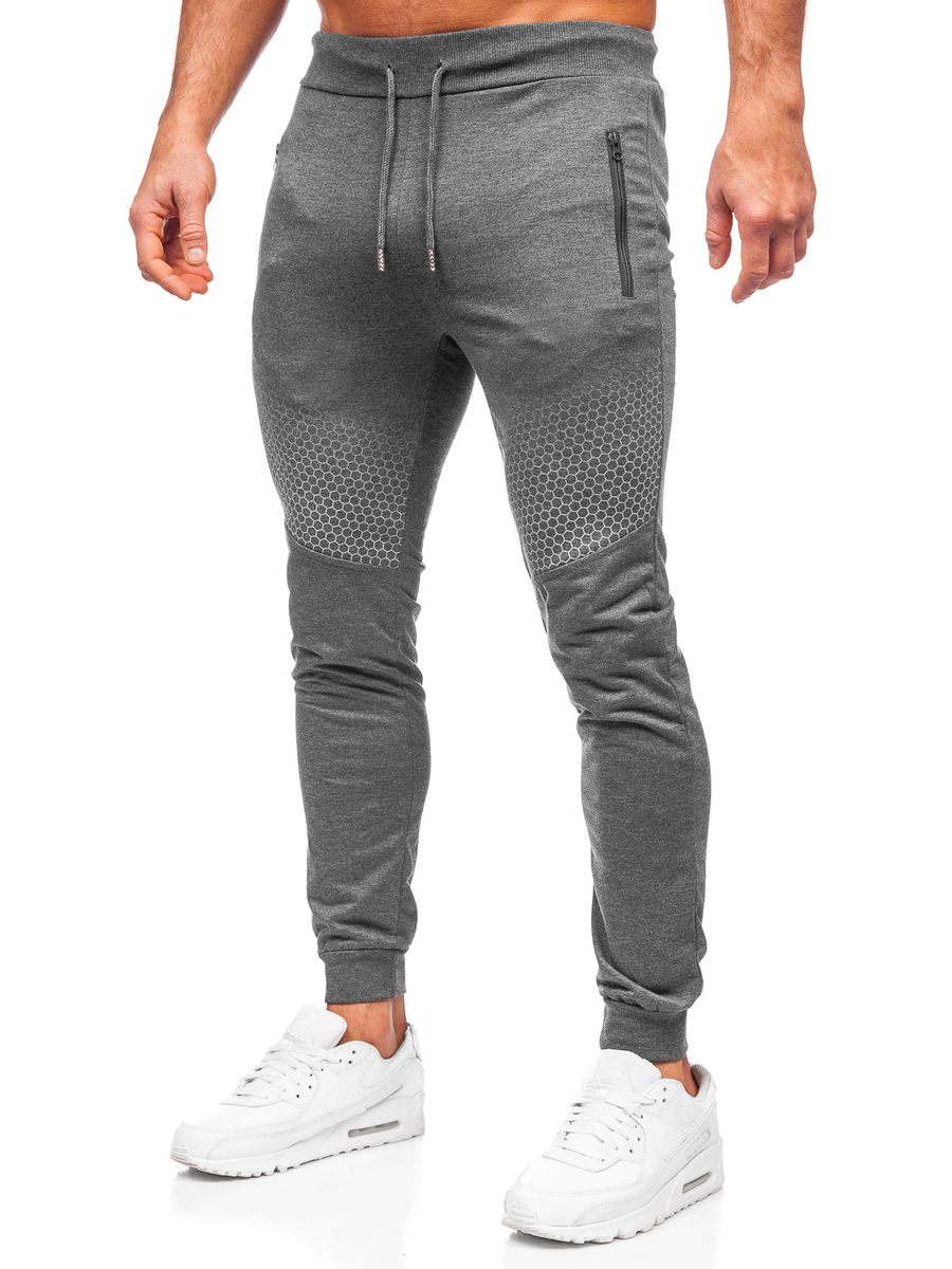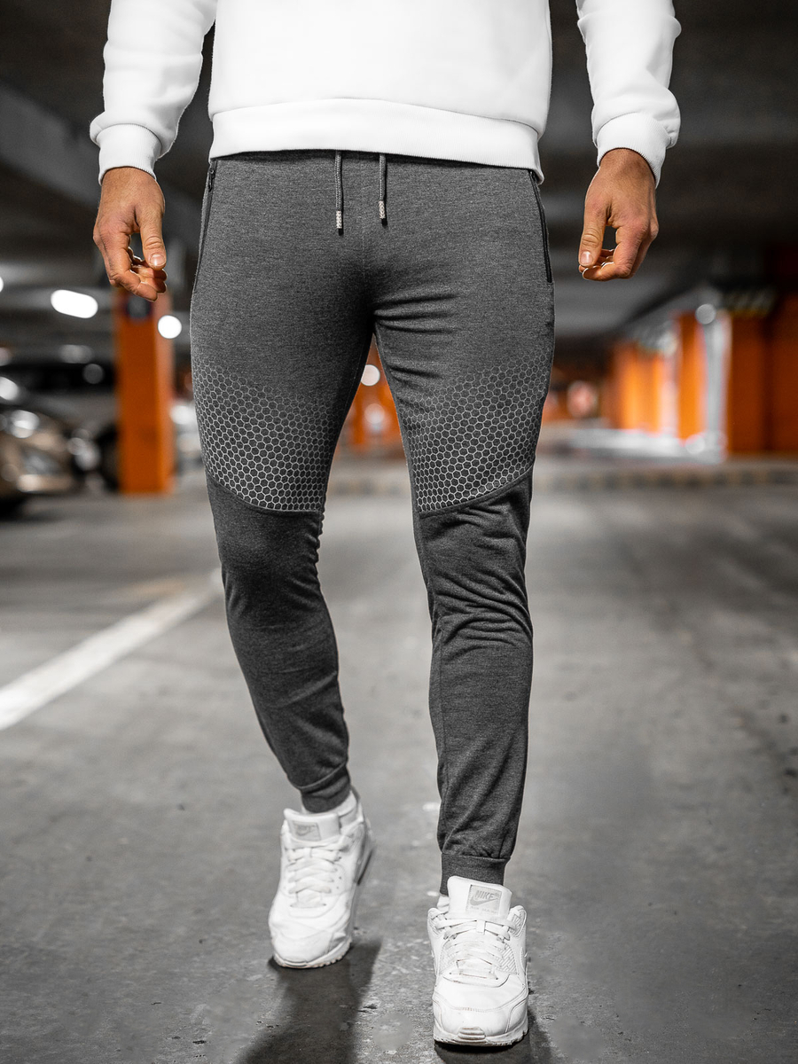 Le pantalon de sport graphite pour homme Bolf HW2351 est le choix parfait quelle que soit la saison de l'année. Le pantalon est réglable à la taille avec un cordon de serrage et une trépointe, vous pouvez donc l'ajuster pour s'adapter parfaitement à votre silhouette. Le pantalon a deux poches sur le devant, avec fermeture éclair et une poche supplémentaire en arrière. Une coupe droite et des trépointes aux jambes lui donnent un look de sport et vous gardent au chaud les jours les plus frais. Ce modèle se distingue par des imprimés décoratifs sur les jambes. Le produit a été fait en tissu délicate et agréable à toucher qui s'adapte parfaitement à la silhouette. Il peut également être porté pour un entraînement, une promenade ou un rendez-vous avec des amis. Combinez-le avec un blouson en cuir et un longsleeve, pour obtenir un look urbain. Il se compose génialement avec un sweat-shirt et un Tee-shirt créant une tenue de sport.