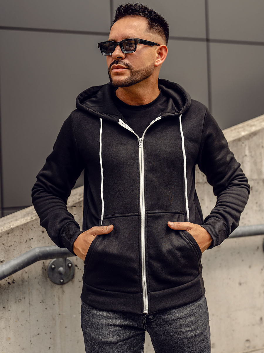 Le sweat à capuche avec fermeture noir pour homme Bolf HW2787 est un produit incontournable de toute garde-robe masculine. Le sweat-shirt est fermé par une fermeture éclair, possède un col montant et une capuche. Le blouson s'adapte bien à la silhouette grâce aux manches terminées par une trépointe. Deux poches latérales zippées ajoutent un caractère pratique.. Les matériaux de la plus haute qualité, 65% coton et 35% polyester, vous garderont à l'aise au quotidien.Il va parfaitement en combinaison avec un pantalon sportif, créant une tenue de sport. Combinez-le avec un tee-shirt, un pantalon jogger et un blouson en cuir pour obtenir un look intemporel.