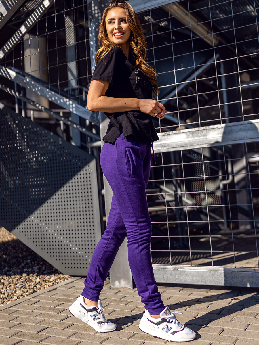 Les pantalons de survêtement pour femmes violet du Bolf CK-01 sont des survêtements classiques à la coupe slim qui mettent parfaitement en valeur la silhouette féminine. Ce modèle de pantalon est disponible dans une large gamme de couleurs intéressante. Le pantalon a un cordon de serrage et un ajustement passepoil à la taille, et deux poches avant. Une coupe simple et ajustée et des poignets aux jambes leur confèrent une allure sportive. Le produit est fait d'un tissu molletonné doux et agréable au toucher.