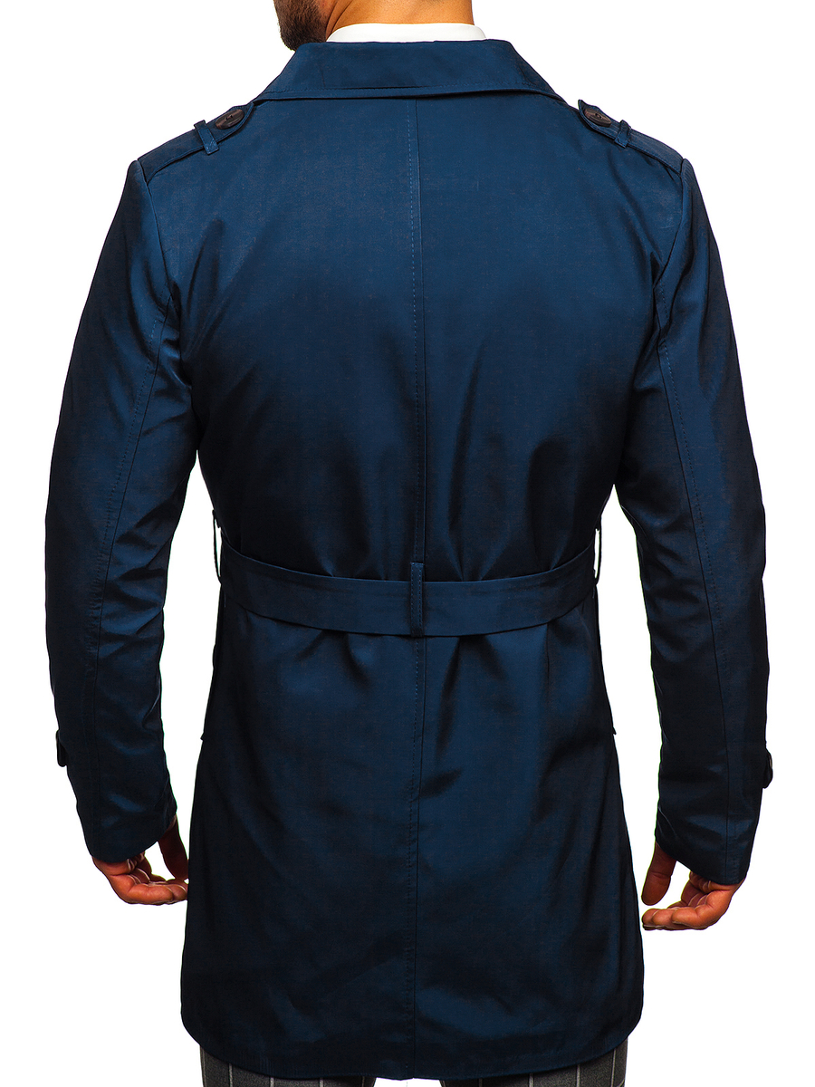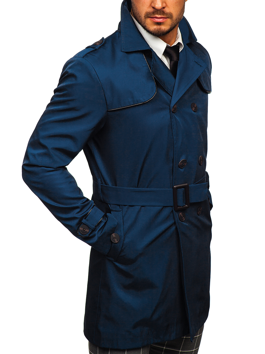 Le trench-coat homme bleu à double boutonnage avec un col montant et une ceinture Bolf 0001 est un excellent choix pour les hommes qui apprécient l'élégance classique. Un manteau à double boutonnage est un incontournable dans la garde-robe de tout homme élégant. Le produit est fermé par des boutons confortables et possède une ceinture incluse, ce qui permet au manteau d'adhérer à la silhouette, offrant ainsi de la chaleur. Le col inversé a une fermeture à bouton supplémentaire. Un élément pratique du manteau sont deux poches extérieures sans fermeture. Les poches ont un bouton décoratif qui ajoute un caractère élégant. Un autre élément fonctionnel du manteau est une poche intérieure où vous pouvez ranger divers types de petits objets. Le produit a également des boutons décoratifs au bout des manches.
