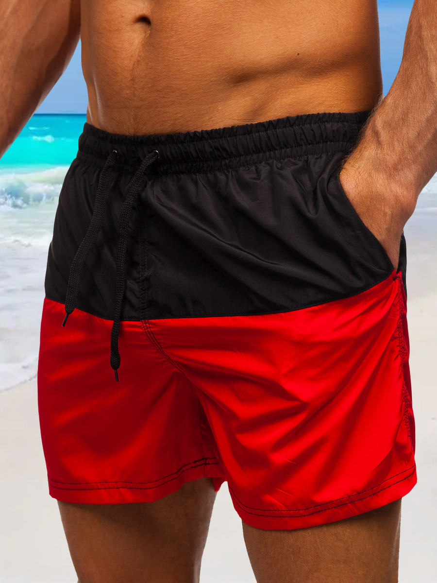 Short de bain pour homme noir-rouge Bolf HM058