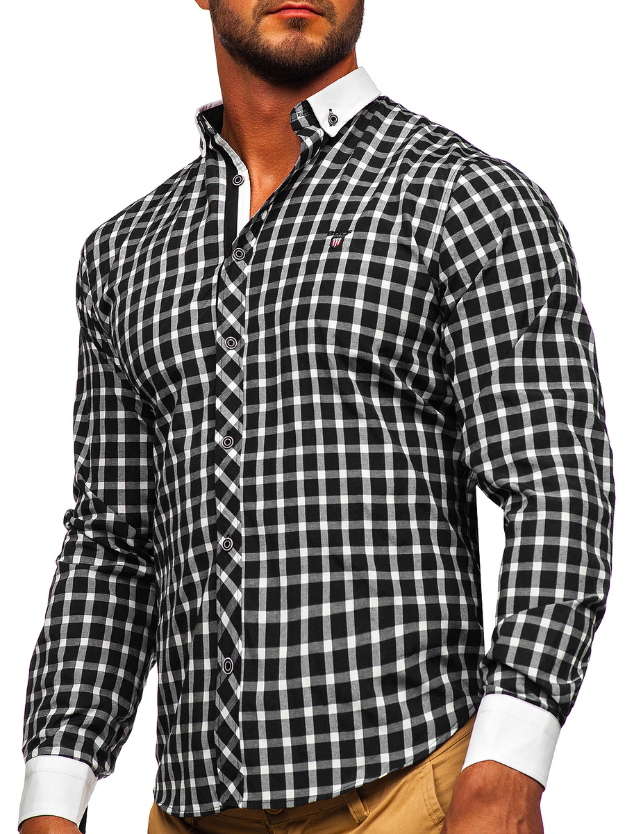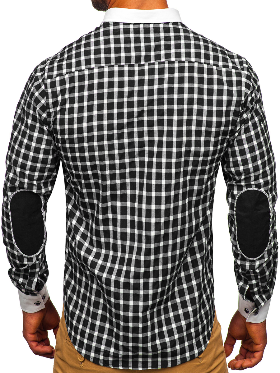 Chemise élégante à manche longue à carreaux pour homme noire Bolf 5737-1