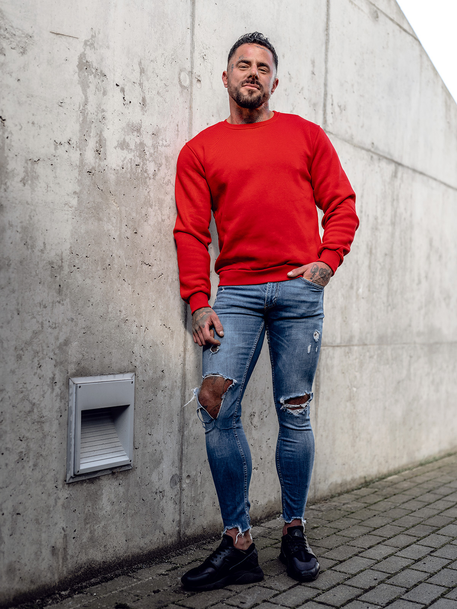 Sweat pour homme sans capuche Bolf 2001A rouge est une proposition de la catégorie de base. Ce modèle se décline dans une dizaine de couleurs plus ou moins intenses, permettant de les assortir facilement à d'innombrables tenues. Les sweatshirts sont définitivement recommandés pour les fans de minimalisme à la mode. Lisse, confortable, bien cousu. C'est le must have dans une garde-robe d'un homme. Une coupe simple et classique dans des couleurs intéressantes fait de ce modèle de sweat-shirt l'aboutissement parfait de nombreux styles de tous les jours et de la rue. Les manches et le bas du sweat sont finis par de larges passepoils. Le produit est fait d'un sweat-shirt agréable au toucher et résistant.