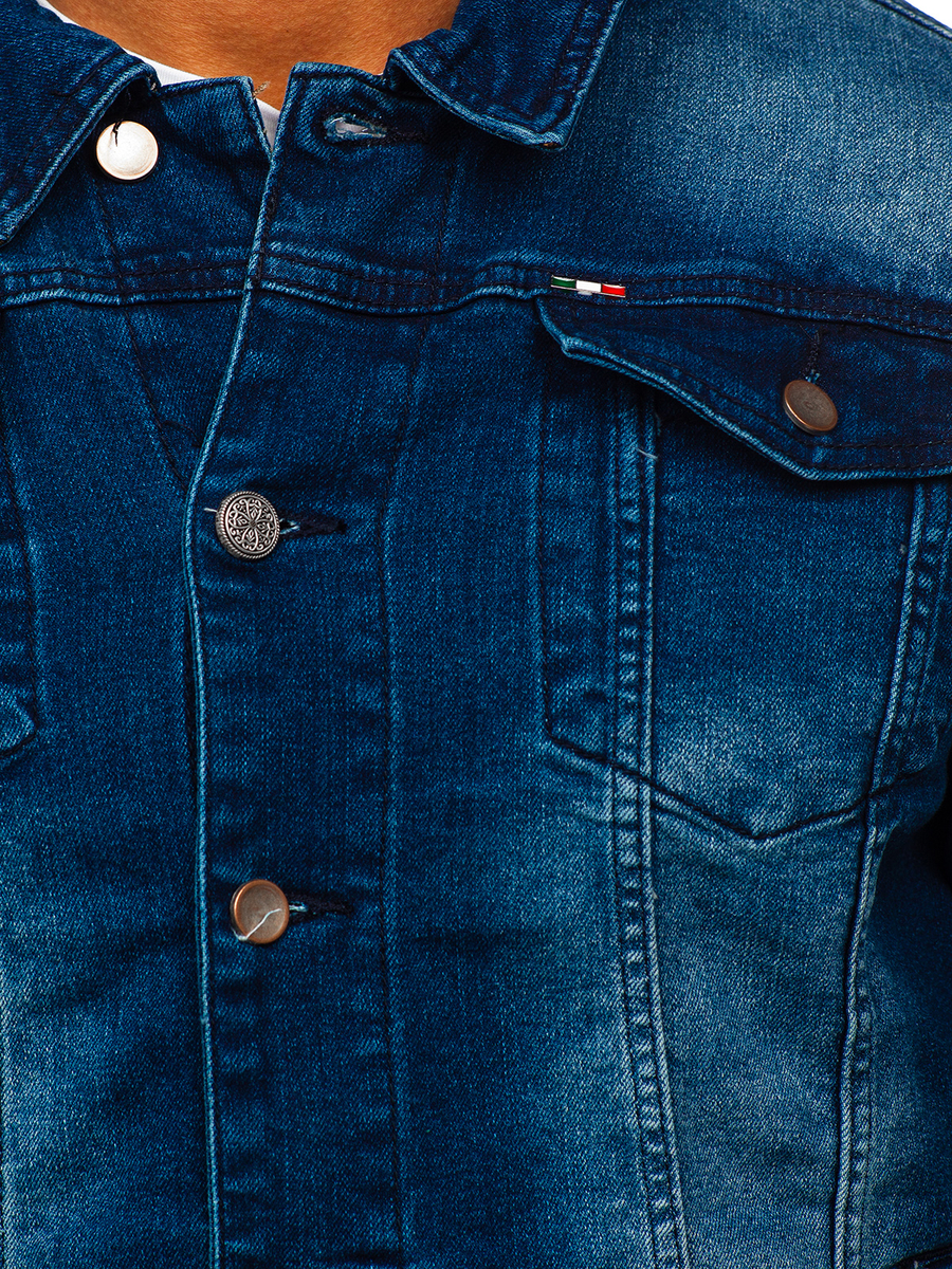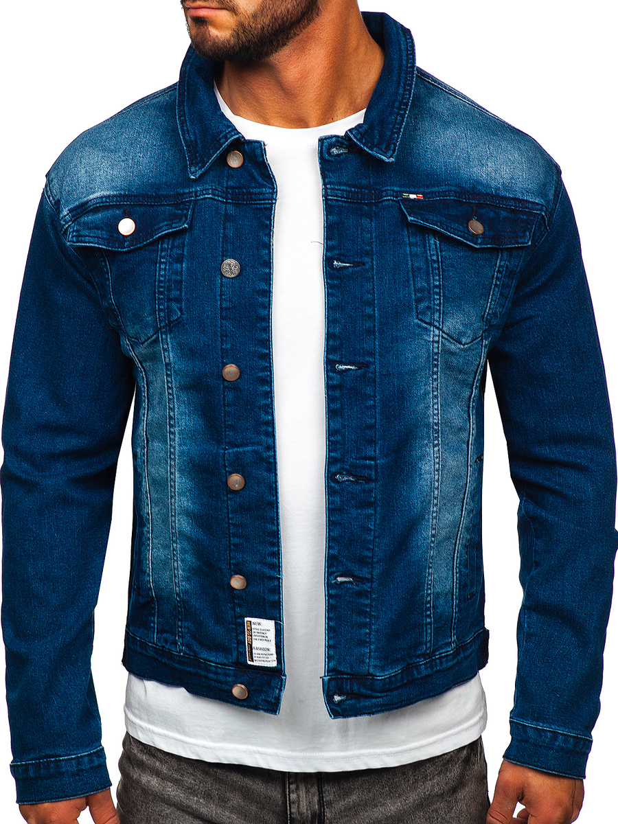 Le blouson en jean pour homme bleu foncé Bolf MJ512BS
